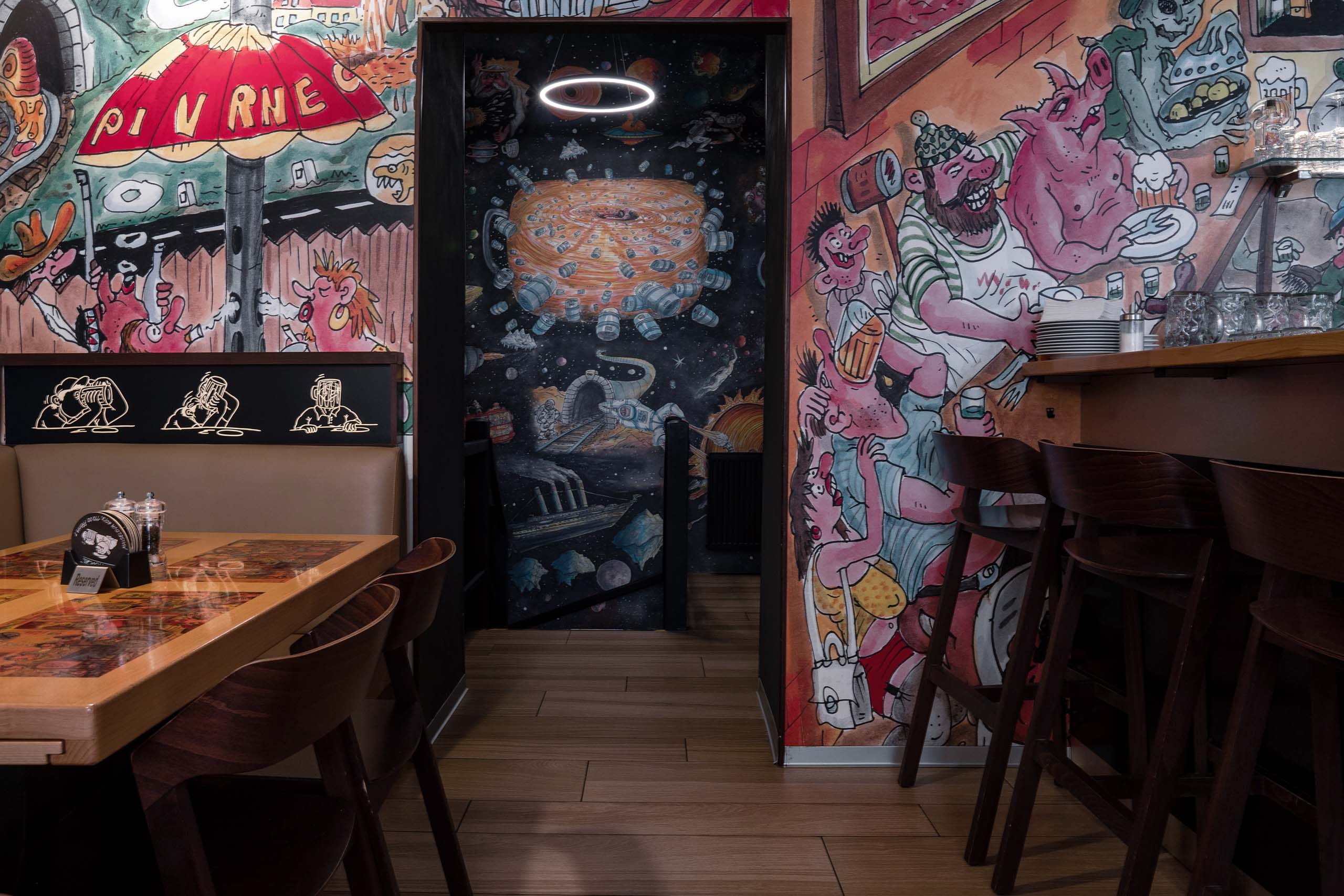 The „U Pivrnce“ restaurant network, with locations in Maiselova, Hradčany, and Žatecká, is a popular choice in Prague for those seeking a traditional Czech pub experience with a unique artistic twist. Each restaurant is decorated with humorous and provocative caricatures inspired by the work of Petr Urban, creating an authentic and lively atmosphere.